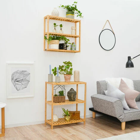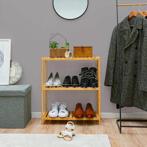 DUNEDESIGN Étagère Bambou – 69x60x26 Meuble Bois Salle De Bain Cuisine Rangement Chaussures – Braun