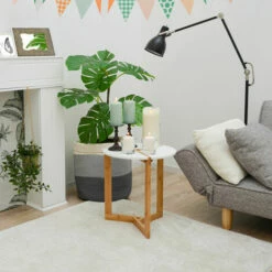 DUNEDESIGN Table D’Appoint Scandinave 40x45cm Blanche Table De Chevet Ronde Basse En Bois – Weiss