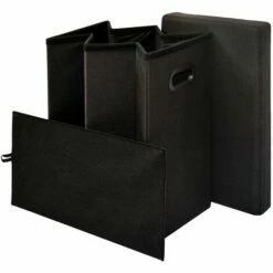 DUNEDESIGN Panier A Linge 3 Compartiment – 84L Trieur De Linge Avec Couvercle – Bac A Linge – Grau