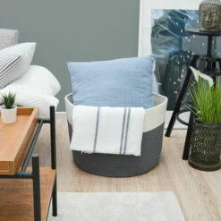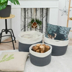 DUNEDESIGN Set De 3 Paniers En Corde De Coton Corbeilles à Linge 20-45L Grands Rangement – Grau