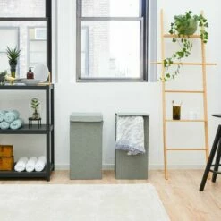 DUNEDESIGN 50L Panier à Linge Sale Avec Couvercle Et Sac à Linge 30x30x60 Bac De Rangement – Grau