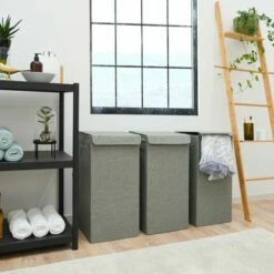 DUNEDESIGN Lot De 3 : 50L Panier à Linge Sale Avec Couvercle – 30x30x60 Bac De Rangement XL – Grau