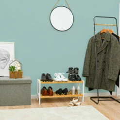 DUNEDESIGN Étagère Bambou – 69x60x26 Meuble Bois Salle De Bain Cuisine Rangement Chaussures – Weiss