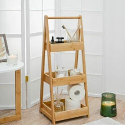 DUNEDESIGN 100% Bambou Etagère De Bain Avec 3 Paniers En Bois 30x18x80 Cuisine Et Bain – Braun