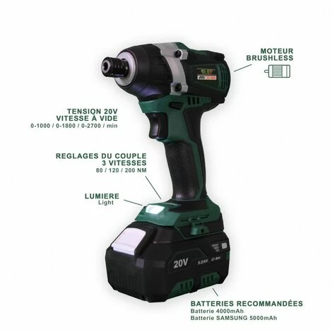 Outre sa frappe tangentielle, elle dispose d’un couple plus important qui atteint 200 Nm contre 80 Nm pour une perceuse-visseuse de haute qualité.